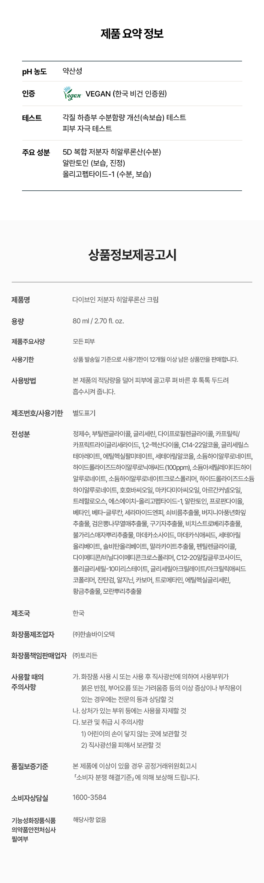 제품명 토리든 다이브인 저분자 히알루론산 세럼 & 크림