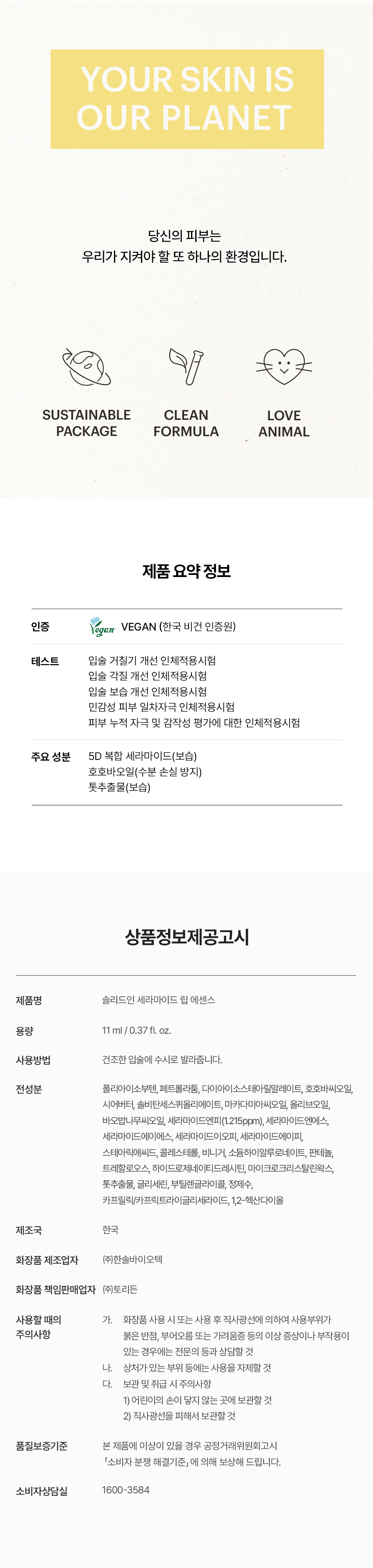 제품명 솔리드인 세라마이드 립 에센스