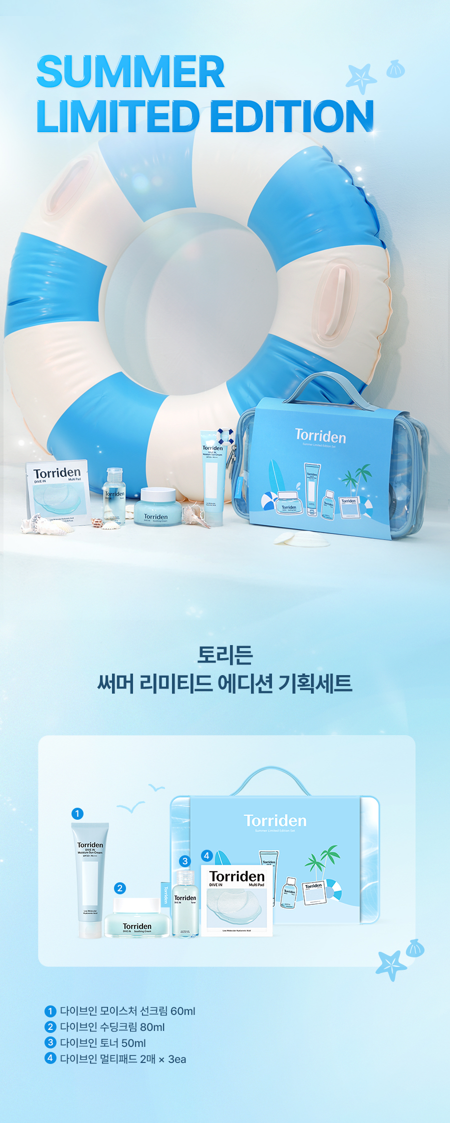 제품명 토리든 다이브인 써머 한정 기획세트 (모이스처 선크림 60ml+수딩크림 80ml+다이브인 토너 50ml+다이브인 멀티패드 2매*3ea)