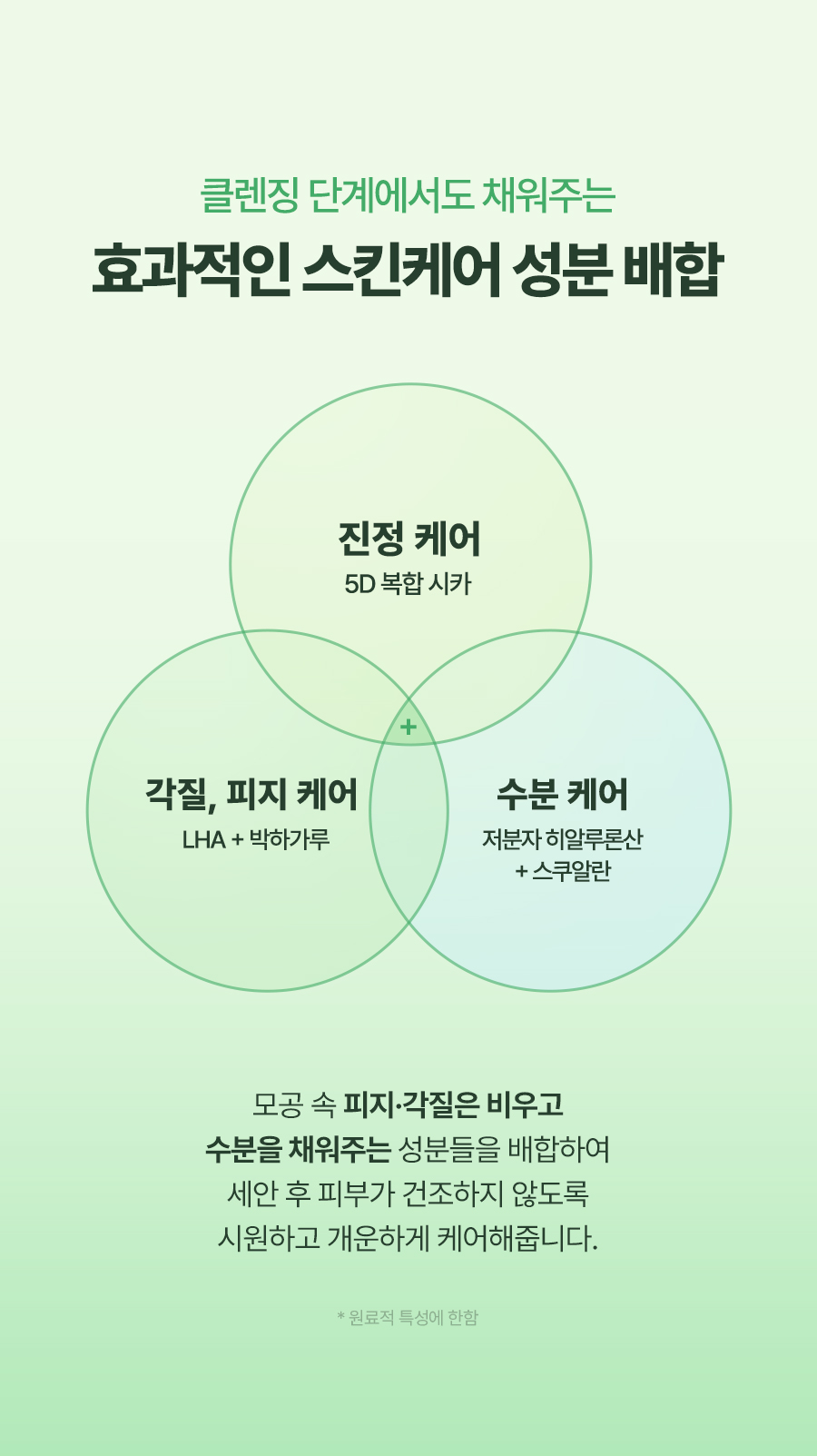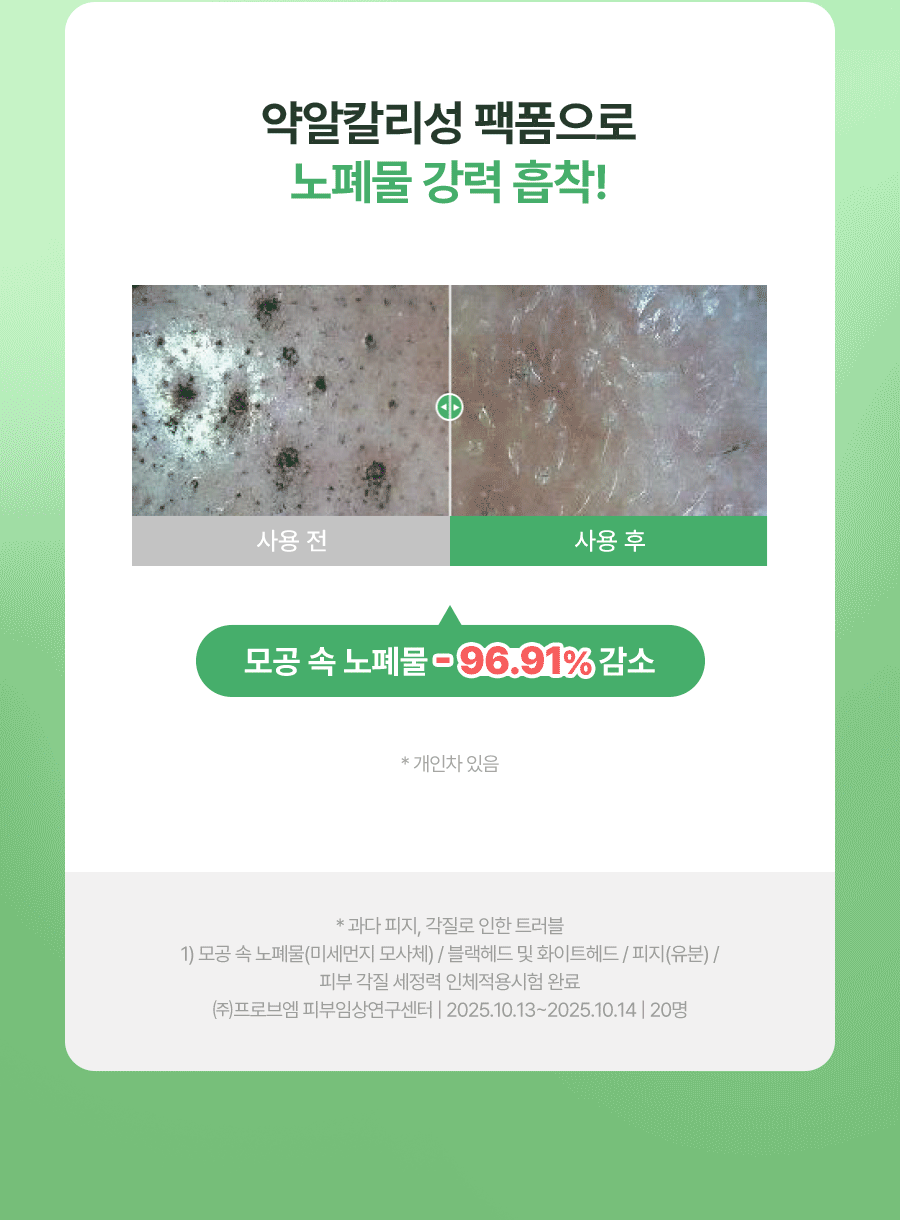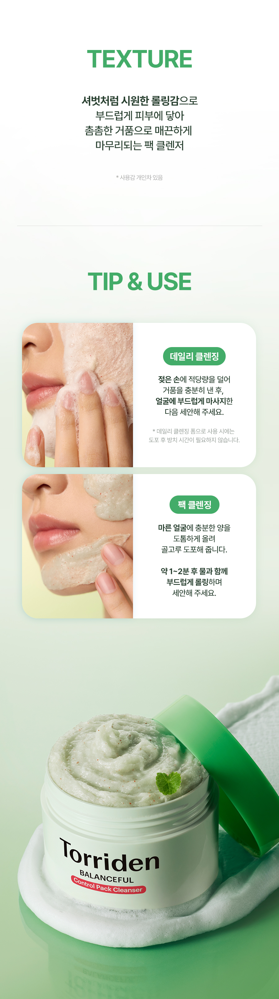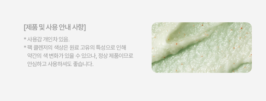 사용방법 [팩 클렌저] 마른 얼굴에 충분한 양을 도톰하게 펴발라 줍니다. 약 1~2분 후 거품을 내며 부드럽게 롤링하고 미온수로 헹궈주세요. [클렌징 폼] 적당량을 덜어 거품을 충분히 낸 후 얼굴에 부드럽게 마사지한 다음 미온수로 깨끗하게 헹구어 냅니다.