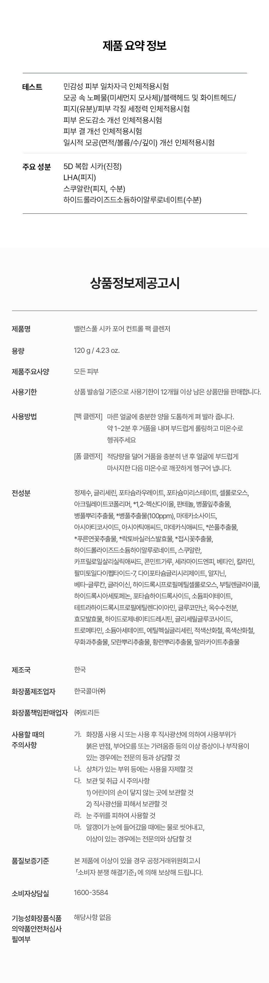 제품명 밸런스풀 시카 포어 컨트롤 팩 클렌저