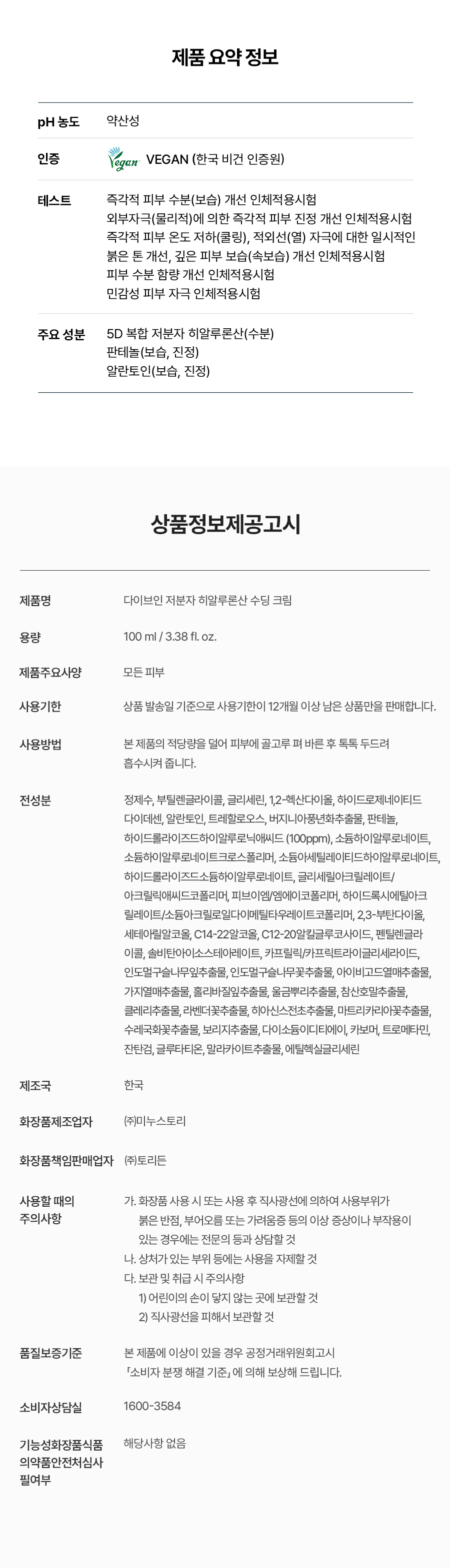 제품명 다이브인 저분자 히알루론산 수딩 크림